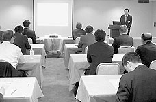 古田専門官は、毒物・劇物の法的規定、インターネットの同省ホームページによる検索手法、今年4月からの毒物及び劇物指定令の一部改正の概要などを解説した。質疑応答では、輸入販売業者が扱う倉庫の規定、毒劇物の小分け作業の規定など活発な質疑が続いた。