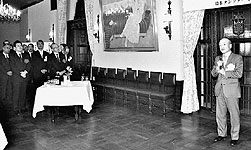 続いて来賓あいさつとして山本繁太郎国土交通審議官が「危険物物流はわが国の産業発展、国民生活に不可欠のもの。石油化学製品も輸出入に係わるものが多いが、法的制度、技術的課題など提起していただき正面から受け止め取り組んでいきたい。国民の安全・安心の確保することが国土交通省の役割であり努力したい」と語った。小幡柾夫・日本タンクターミナル協会会長(内外輸送社長)の乾杯の後歓談に移り、金井琢汪・日本危険物倉庫協会副会長(築港専務)が中締めを行った。