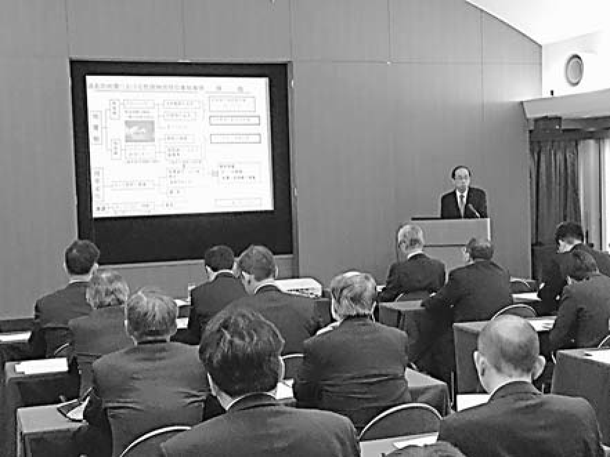 当日は関東、関西各支部の活動報告を行った後、消防庁危険物保安室の梅原直室長が「屋外タンク貯蔵所に関する保安対策の現状」と題して講演した。屋外タンク貯蔵所に関連する設備構造と保安対策、危険物規制における事業者と行政の係わり、主な技術基準-など解説、ここ10年は屋外タンクの漏洩事故が増加傾向にあると指摘した。さらに地震対策、自主保安による事故防止の推進、健全性評価・余寿命予測手法の確立などが当面の課題とした。