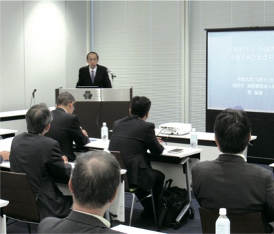 勉強会では、総務省消防庁危険物保安室の内藤浩由課長補佐が「最近の事故および危険物行政の動向について」と題して講演。危険物施設の事故発生状況と事故防止対策、近年の危険物施設における事故事例、東日本大震災を受けた対応、近年の検討会概要などを紹介した。